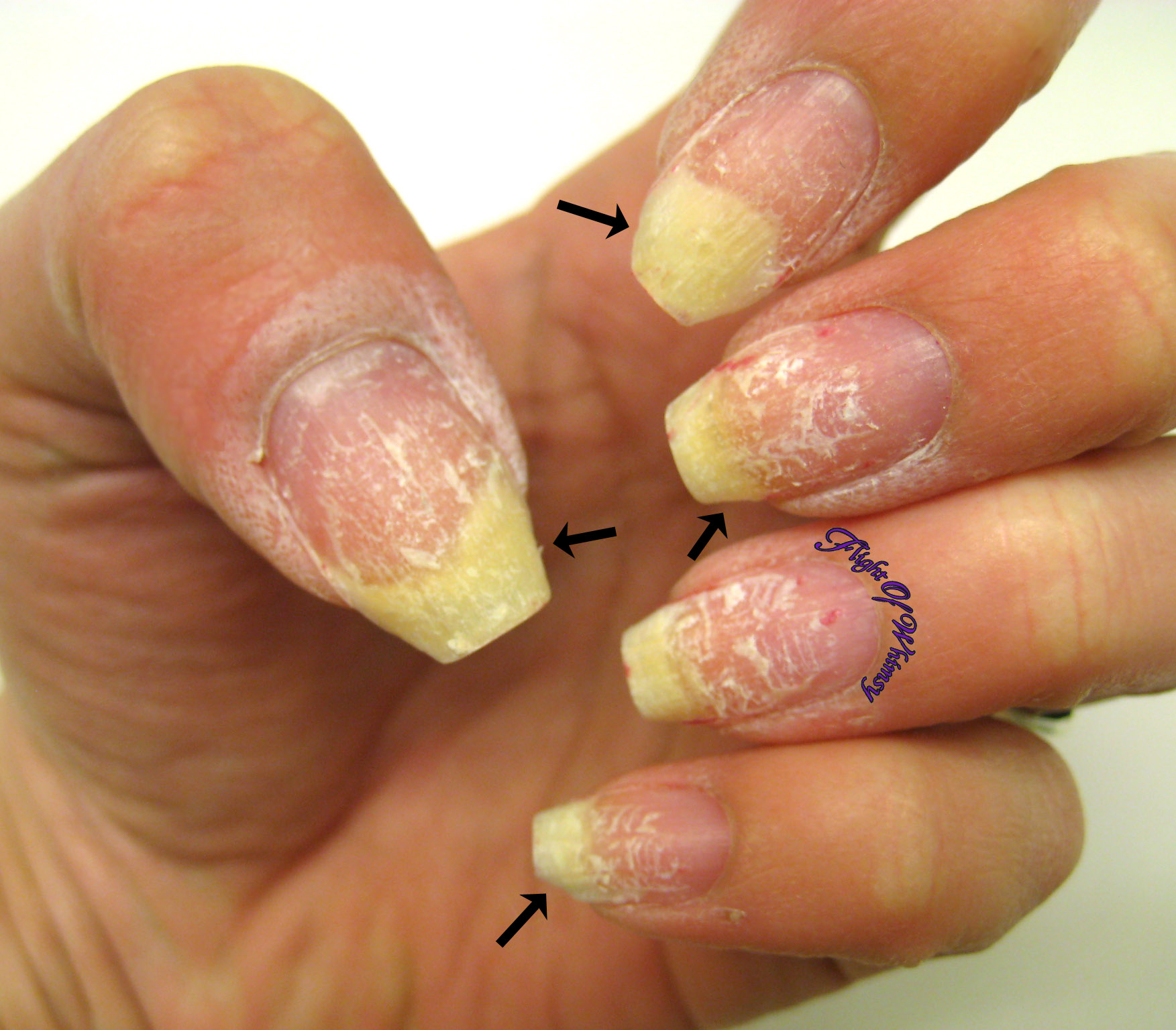 Having an acrylic nail can ruin your regular nails because it can make them weak, frail, parched, and thin. It’s also possible that infection and allergic reactions may occur. A Must-Read: Toenail Clippers for Arthritic Hands As you continue to read on, you’ll realize that acrylic nails will cause harm to your nails.Acrylic nails can also damage the nails in the long run because the natural nail surface is applied, which means the natural nails become more fragile. If acrylic is too piercing when applied, it can make your natural nails brittle and painful. If you are too rough or abrasive when removing, you can easily damage your real nails.Oct 01, 2017 · To make sure your digits stay healthy while wearing acrylics, Candido suggests using cuticle oil daily, twice a day. If your nails are already damaged, use nail treatments to nourish your nails ...Can acrylics permanently damage nails? Acrylics shouldn't ruin nails. But, a poor application and removal process of nail acrylics – or any type of nail enhancement- can seriously damage nails. When properly applied by a trained technician, with the right aftercare advice and regular upkeep, acrylics nails shouldn't cause any serious damage.Dec 21, 2019 · Artificial nails come with a much higher risk of infection. Bacteria and microorganisms that cause disease can accumulate in any space between the natural nail and the acrylic. This was confirmed in a study carried out by the Max Peralta Hospital in Costa Rica, which focused specifically on nurses’ nails. If you injure a finger or the acrylic ...Jul 23, 2021 · Thick acrylics can cause your natural nails to bend or warp. In some cases, it’s changing the shape of your natural nail and causes pain. The chemical components might also cause pain. You may not know you’re sensitive to the chemicals until you get your nails done. You might experience temporary pain for a few hours.Feb 22, 2019 · Choosing the right type of artificial nails is more than a cosmetic decision. Learn the pros and cons of acrylic, gel and dip nails in this infographic. Share this …May 10, 2013 · If the instruments are outdated and/or dirty, leftover bacteria or fungi may enter your bloodstream and lead to infection, discoloration and nail thickening. Don’t let the nail expert roughen or...Dec 29, 2017 · Below are a few of the most common reasons bubbling can occur, but for more information check out our blog on Bubbles in Acrylic Nails. Incorrect Liquid to Powder Mix Ratio – Too Wet makes tiny (sometimes unnoticeable at first) bubbles that will grow in size over time.1 day ago · If you have an open wound or are bleeding, putting an acrylic nail over it could prevent your nail from healing properly. It may make it more likely for the area to become infected. However, if your nail is simply cracked above the nail bed, and there is no bleeding or open wound, then you can fix the nail.
